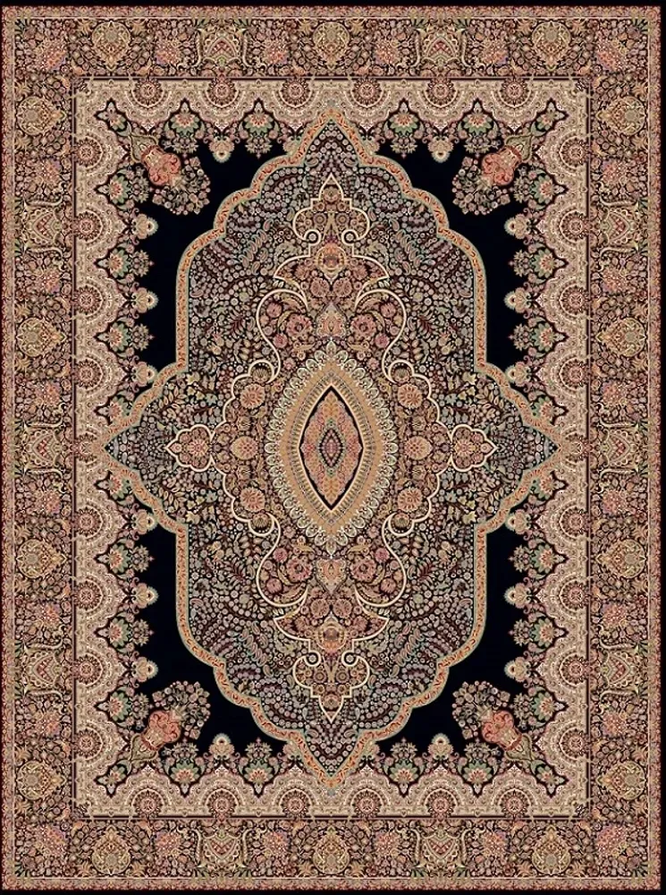 Persisk matta Mashad i svart/beige färg.