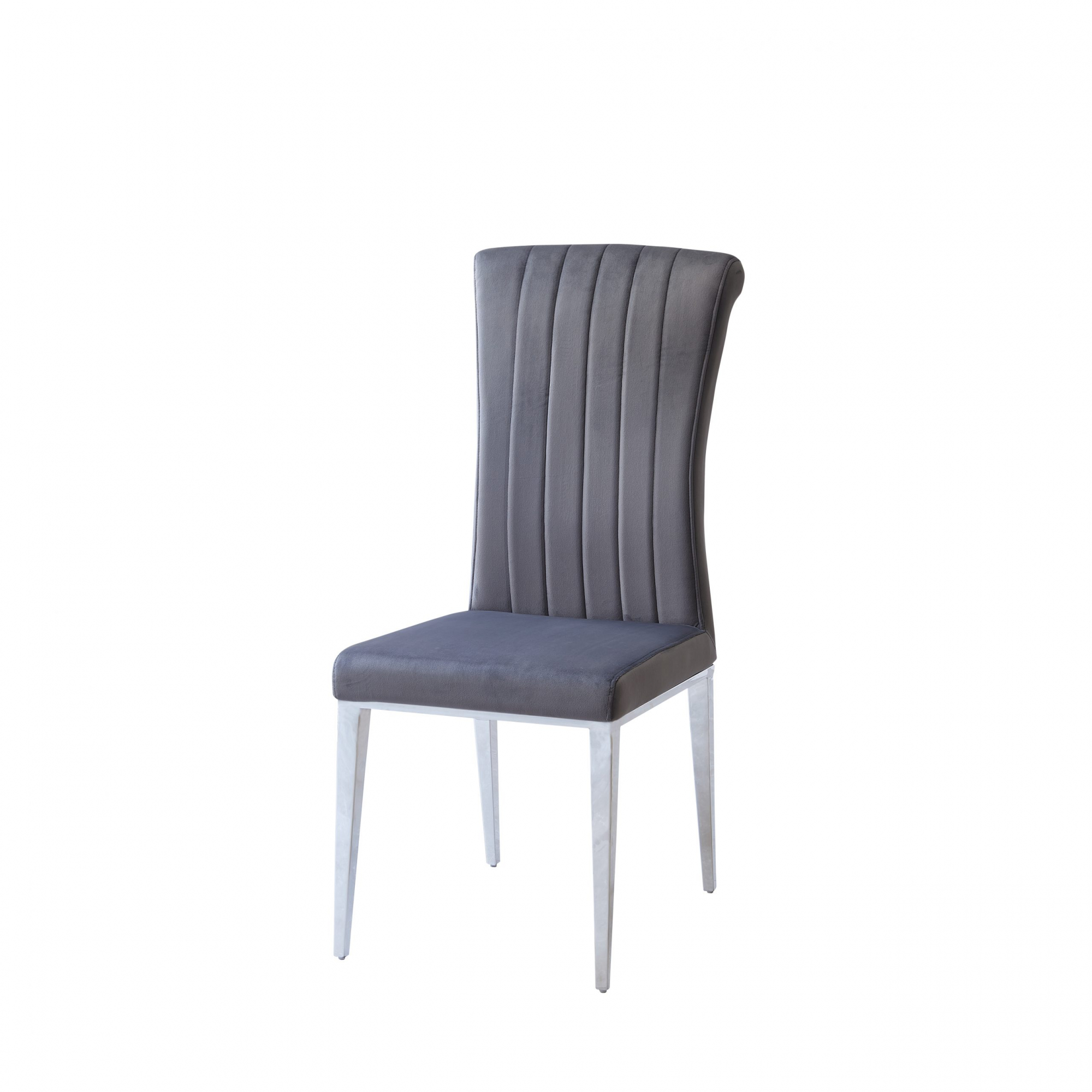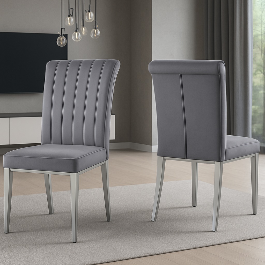 Bella stol i mörkgrå sammet med silver ben är ett exklusivt tidlöst val som kombinerar design och komfort på bästa sätt.