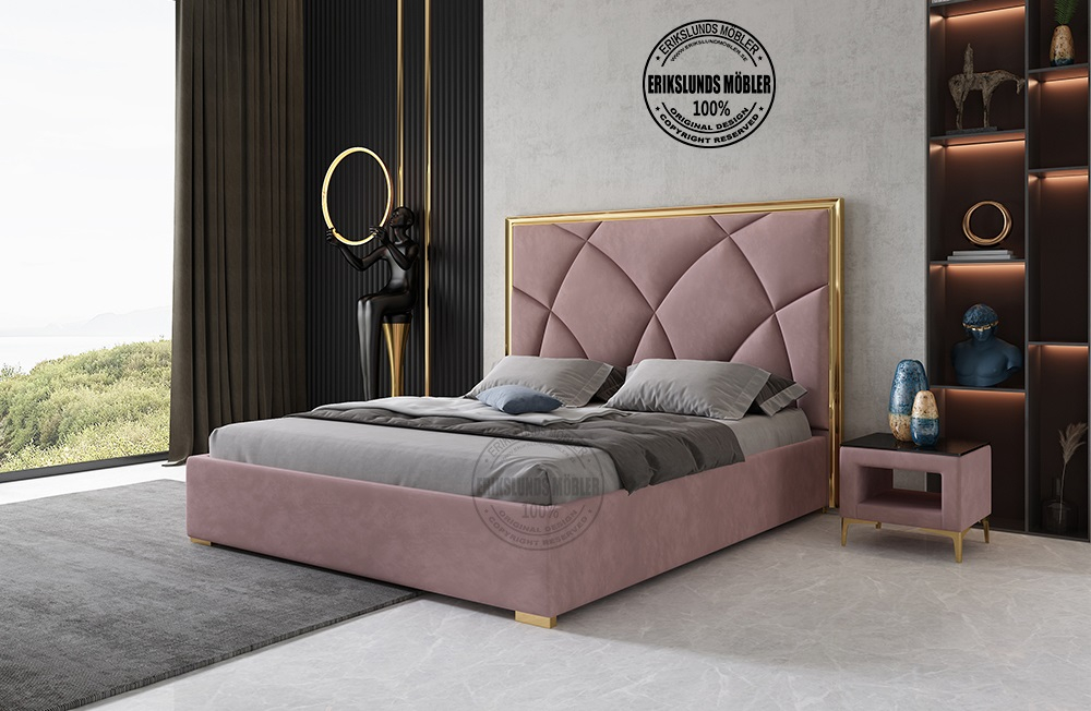 Helen sängram i bleklila sammet med guld ben