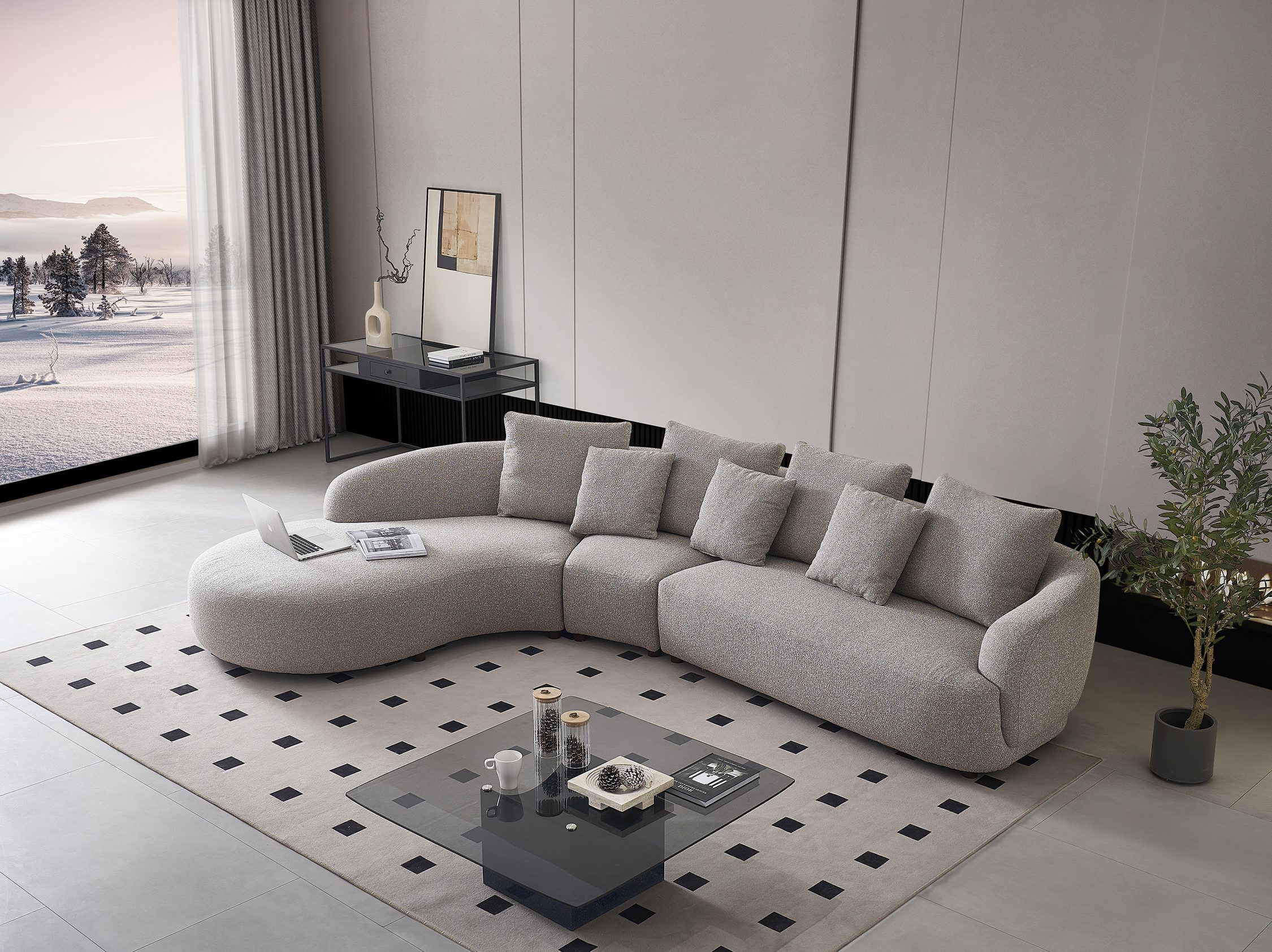 Lulu hörnsoffa vänster melerad gråbeige tyg