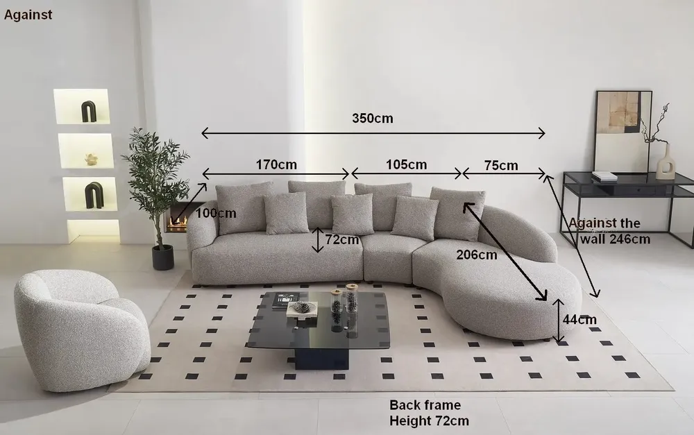 Mått: Längd 350 Djup 100 cm Långsida med Divan 246 cm