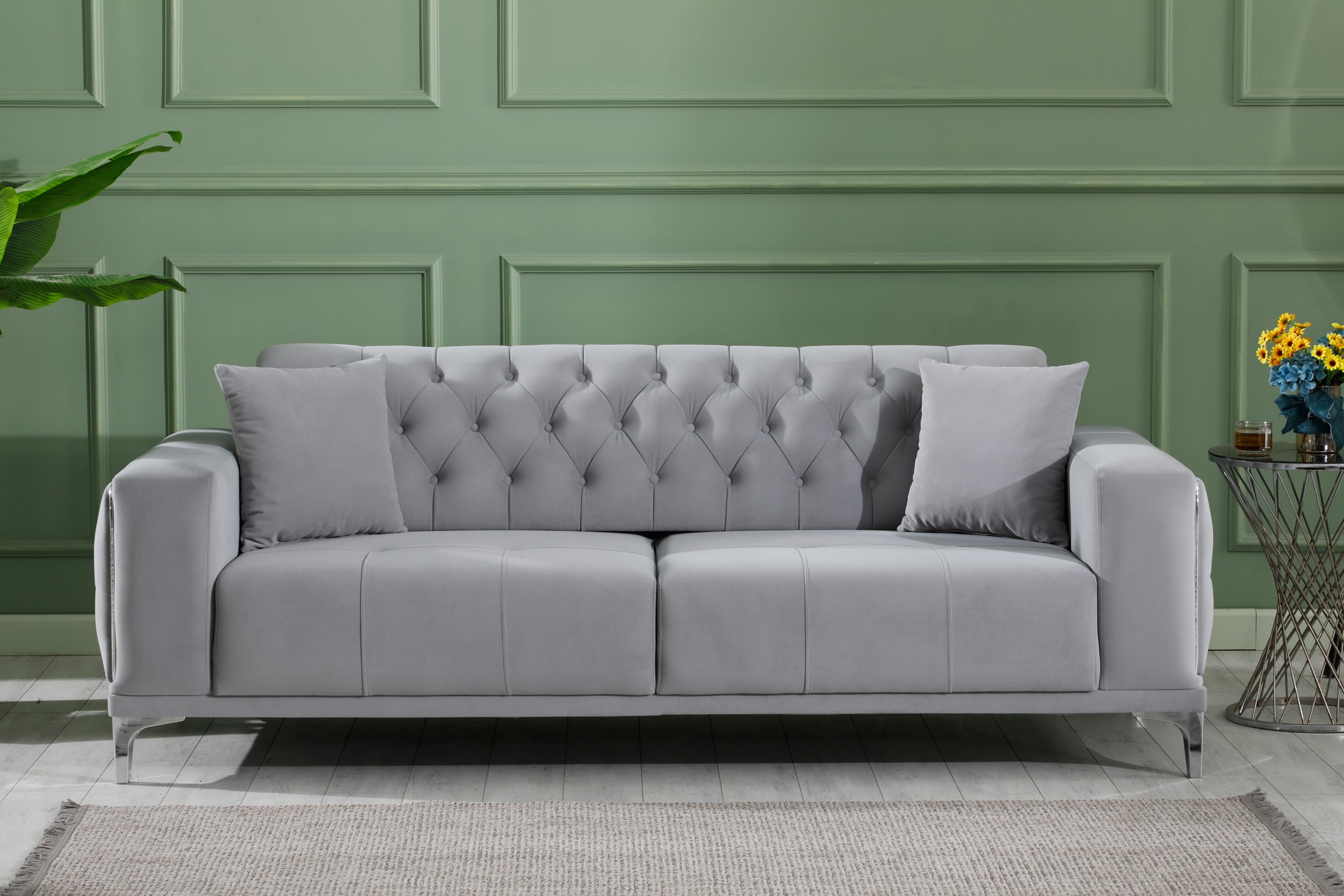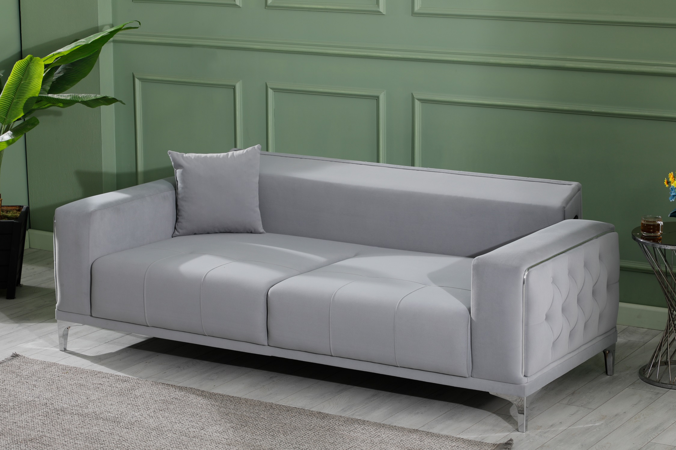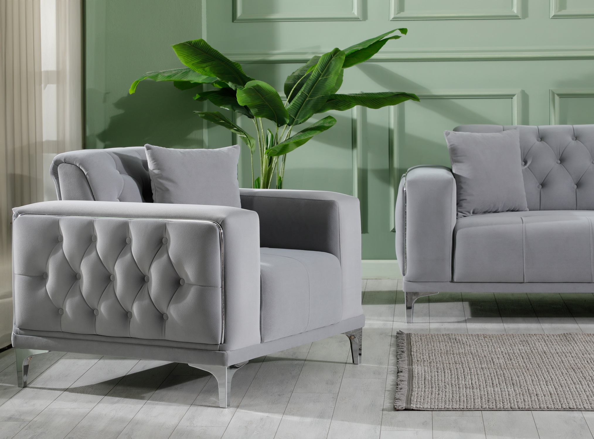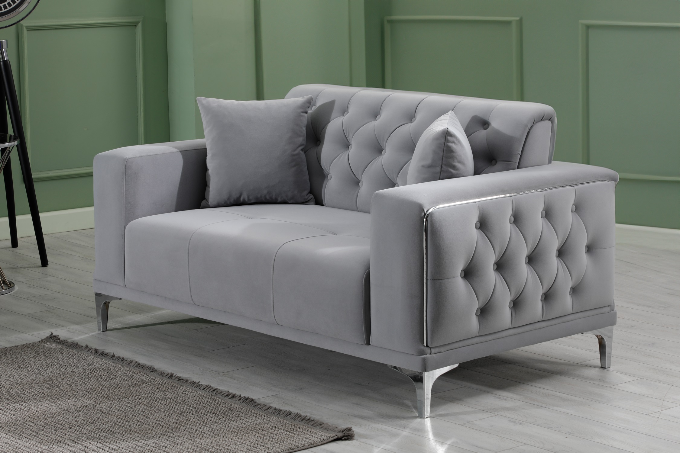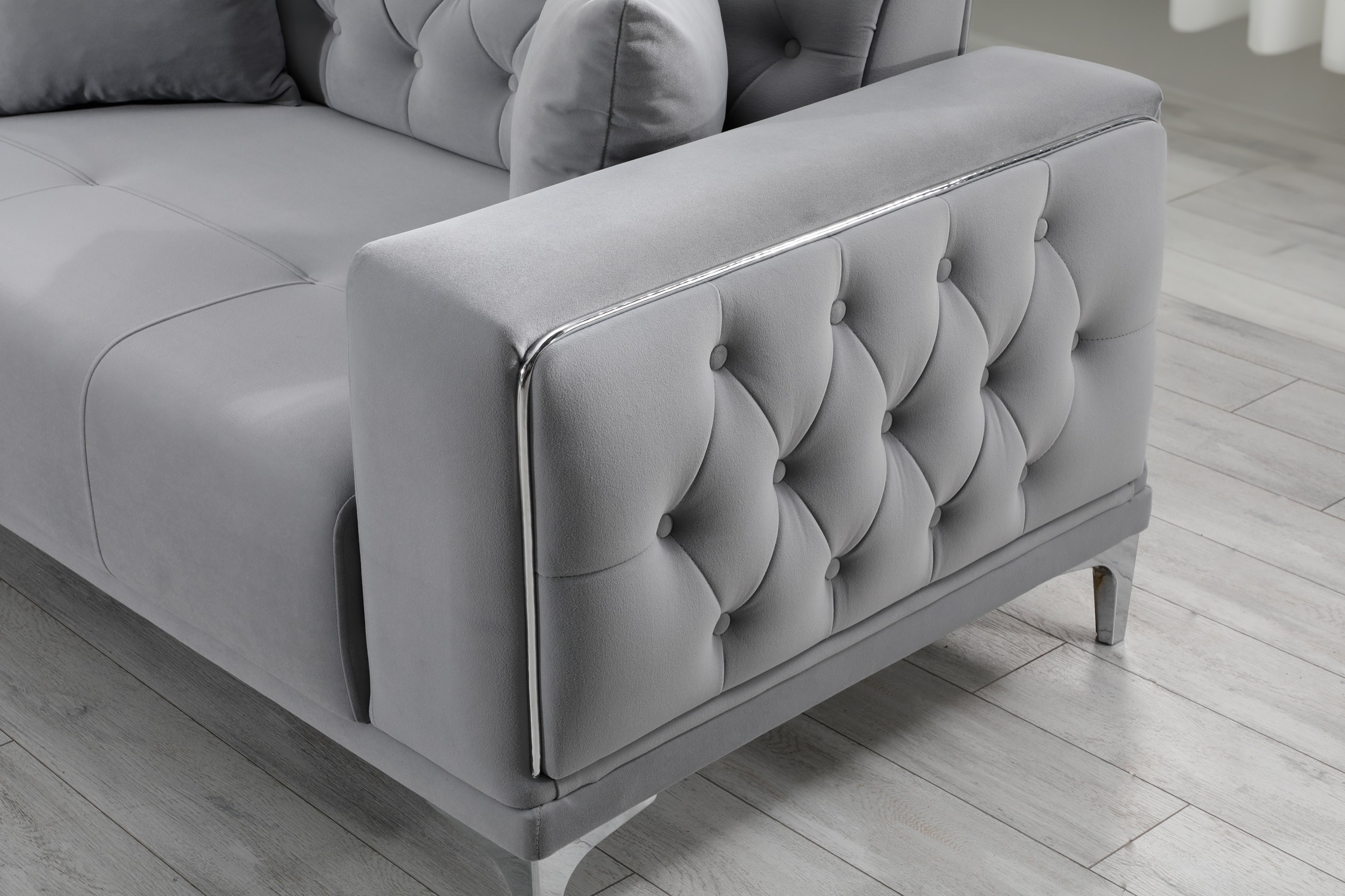 Madeleine soffgrupp 3+2+1 grå sammet silver ben