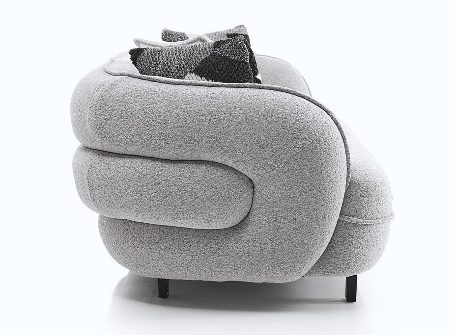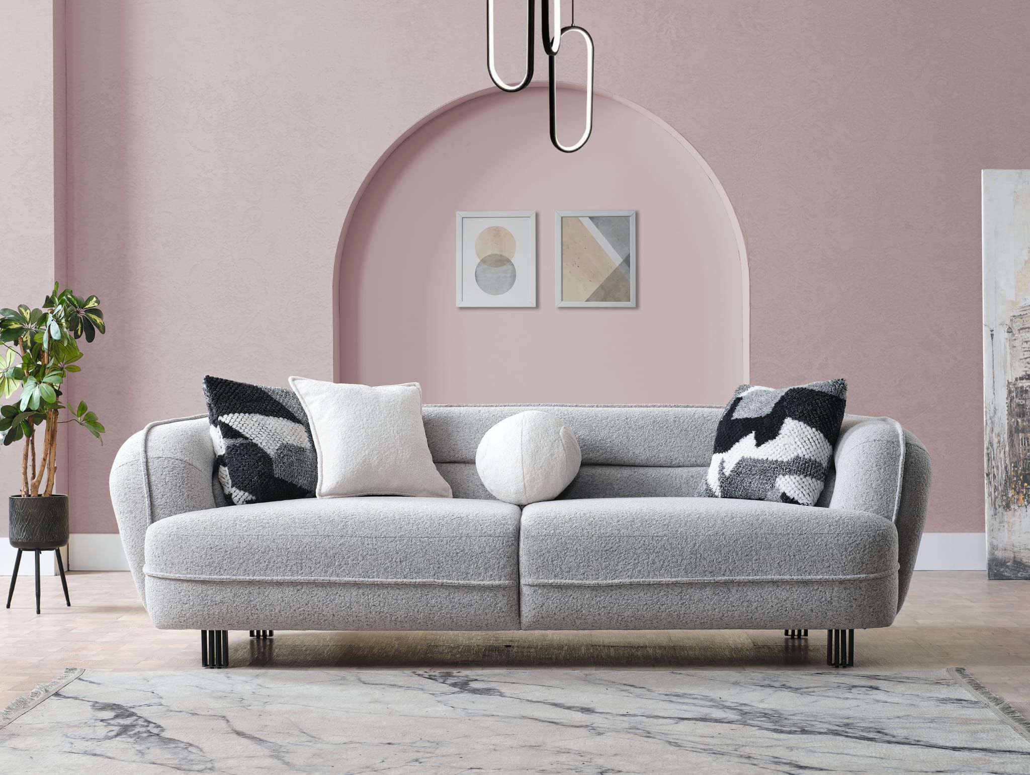 Snyggt Soffgrupp i teddytyg med dekorations kuddar.