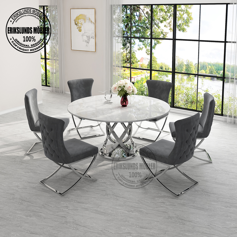 Letar du efter något speciellt till ditt vardagsrum eller köket ? Detta matbord är det perfekta valet för dig som uppskattar elegant och stilren design utöver det vanliga. Det har kromade ben med vacker melerad bordskiva i vit konstmarmor.