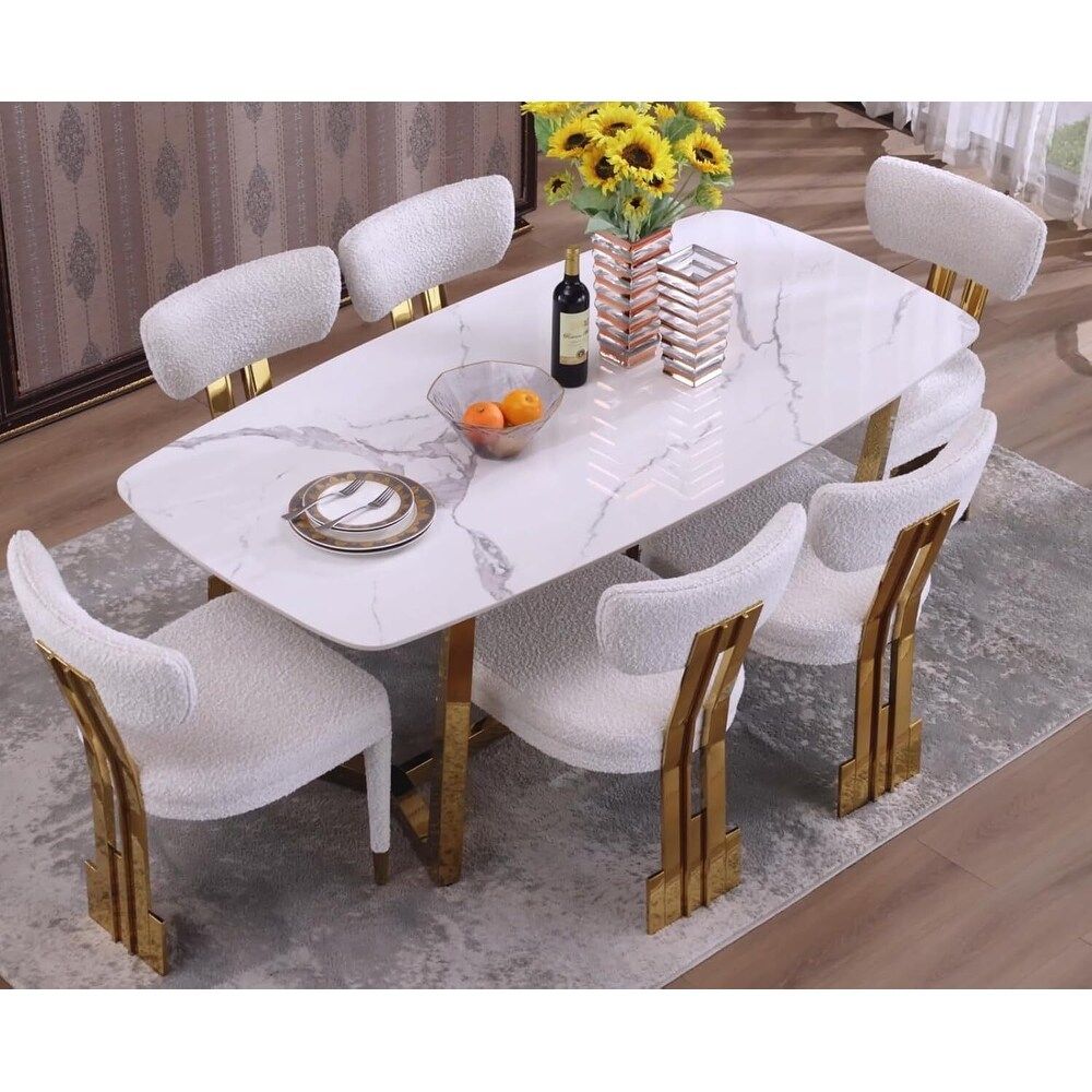 Matbord Paris vit-grå konstmarmor och guld ben.