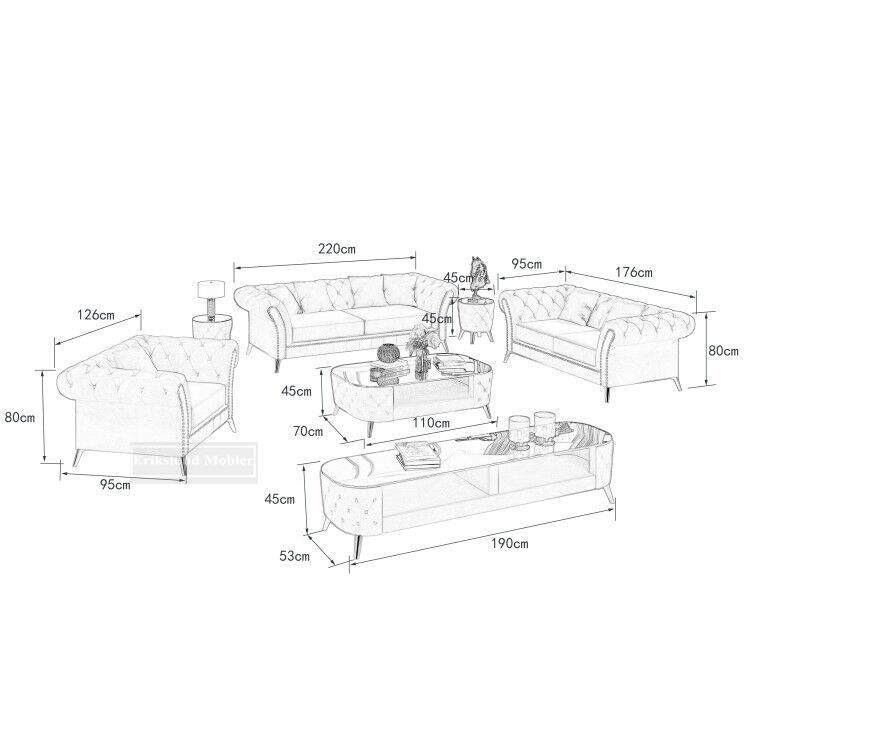 Nina soffgrupp 3+2+1 i gråbeige sammet med silver ben