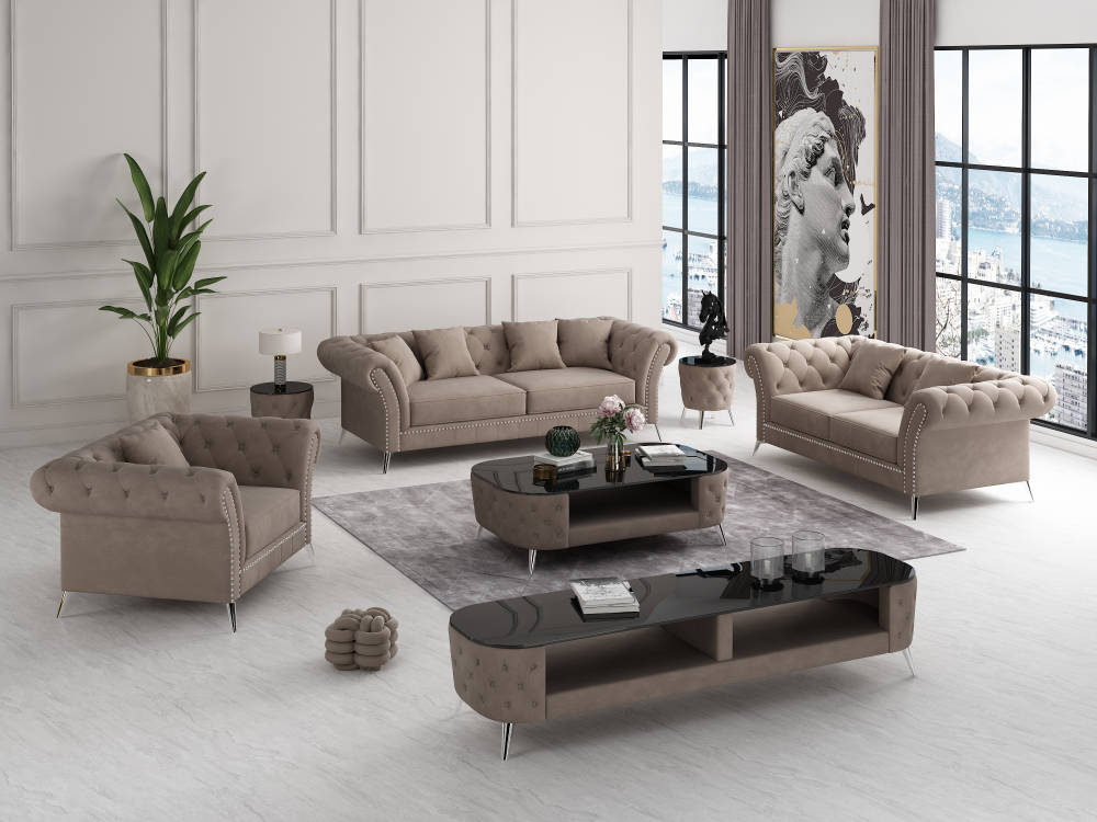 Nina soffgrupp 3+2+1 gråbeige sammet