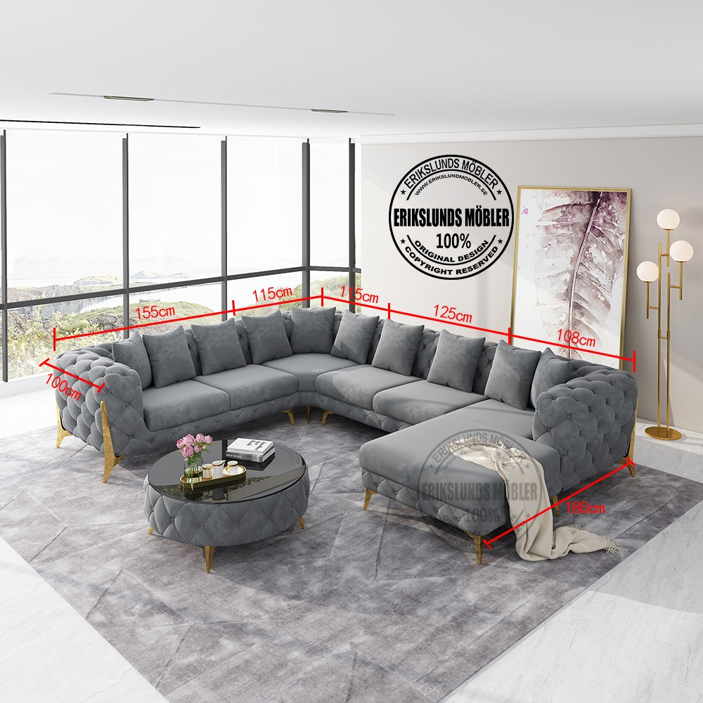 Paris divansoffa höger 47A gråbeige sammet guld ben