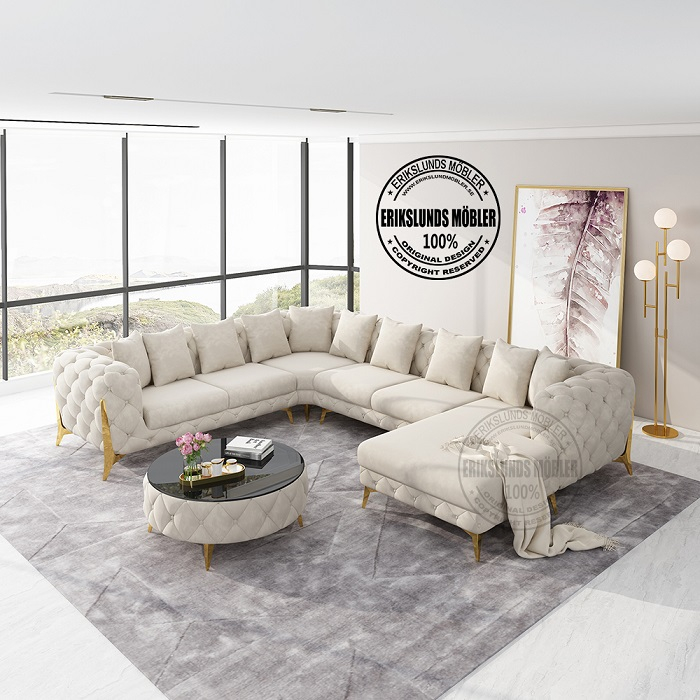 Paris divansoffa höger beige guld ben
