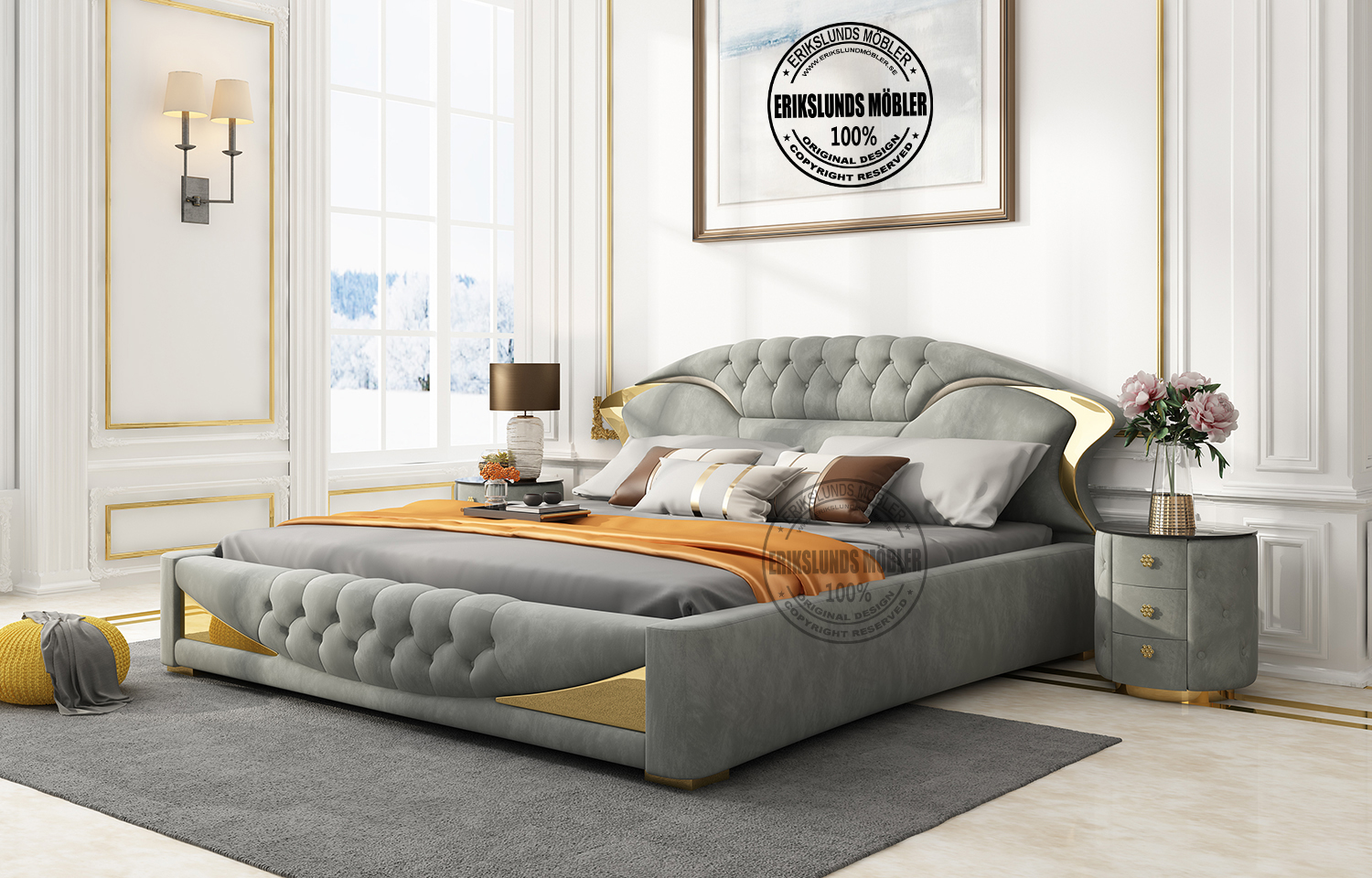 Madrass och sängbord finns att köpa till!